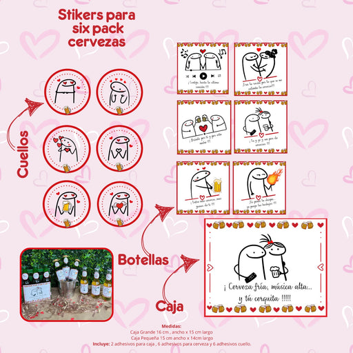 By Balloons BogotaStickers Adhesivos Para Six Pack Caja Pequeña de Cerveza Flork Amor Ref. 3 x 1 Unidad Ideales para Botellas de cerveza 330 ml Este kit incluye: 2 ...