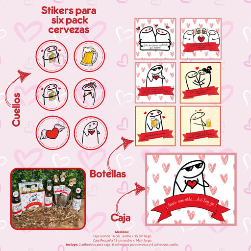Precio original $8.500,00Precio actual $7.000,00| /Stickers Adhesivos Para Six Pack Caja Grande de Cerveza Flork Amor Ref. 2 x 1 Unidad