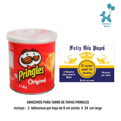 By Balloons BogotaStickers Adhesivos Para Papa Pringles Ref. 4 x 2 Unidades Ideales para Tarros pequeños Pringles de 40 Gr Este kit incluye: 2 Adhesivos Para Tarr...