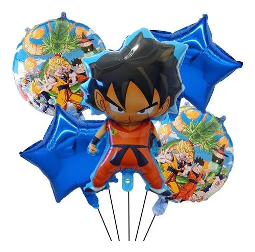 Precio original $18.900,00Precio actual $13.500,00| /Bouquet de Globos Goku Estrellas Azules X 5 Piezas