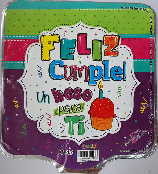 Fiesta 1963Globo Metalizado Cuadrado Mensaje 18" X Unidad Ref. 4