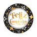 Plato 7" Metalizado Feliz Cumpleaños Dorado Negro X 8 Unidades Sempertex