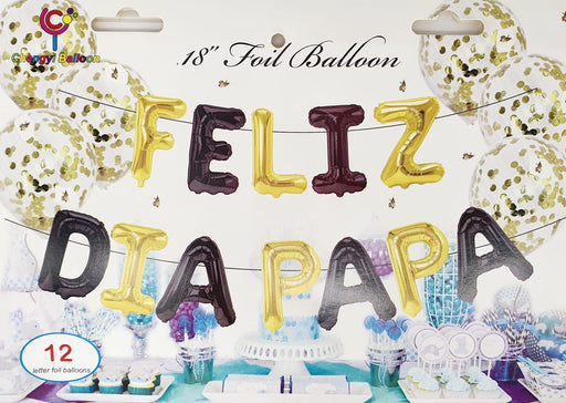 Sc & BalloonGlobo Letrero Feliz Dia Papa Dorado Negro X 3 Piezas
