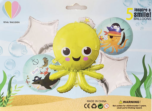 BALLOONS BOGOTABouquet de Globos Birthday Pulpo Estrella Plata X 5 Piezas