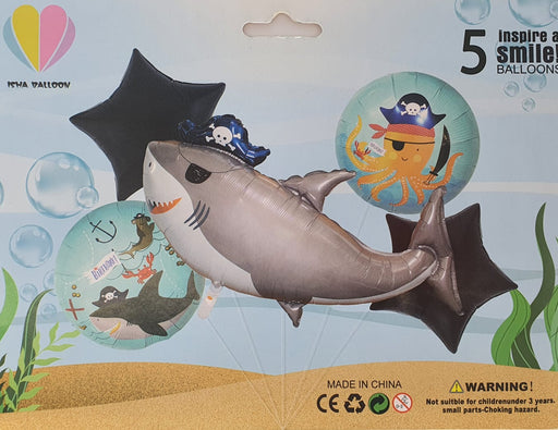 A Hua BalloonBouquet de Globos Birthday Tiburon Estrellas Negras X 5 Piezas