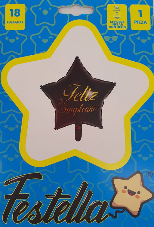 FestellaGlobo Metalizado Estrella Feliz Cumpleaños Negro Dorado 18" Festella