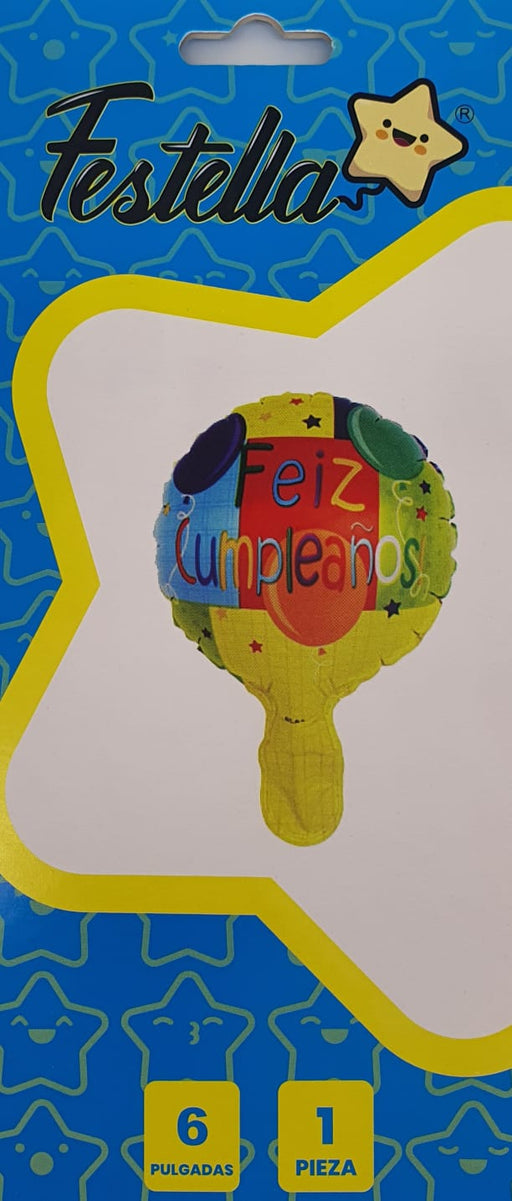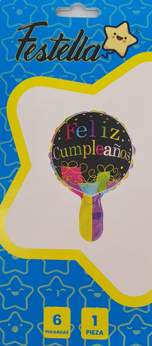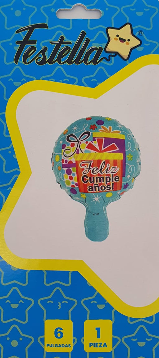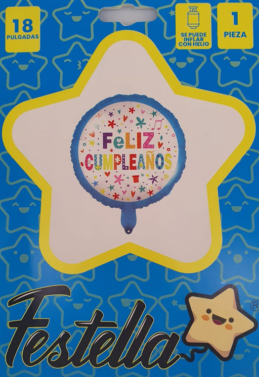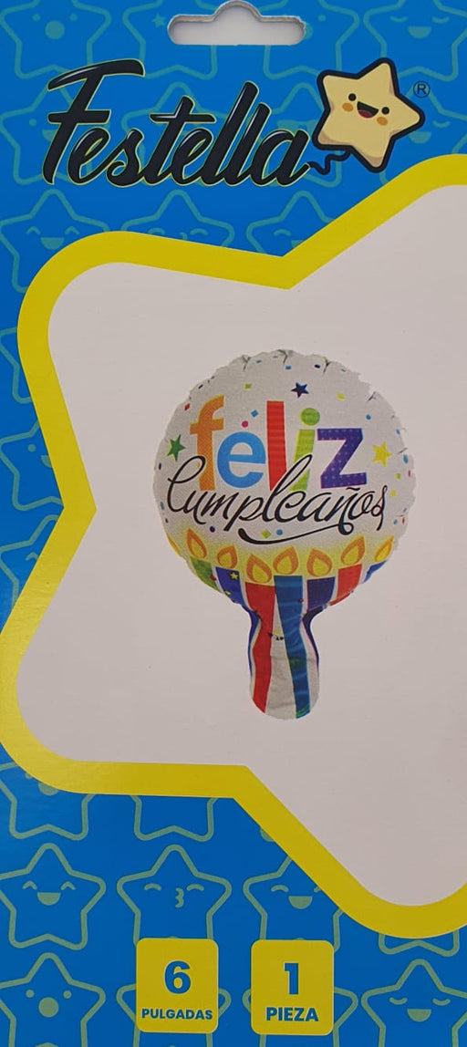 Precio original $2.700,00Precio actual $1.500,00| /Globo Metalizado Redondo Feliz Cumpleaños Estrellas Coloridas 6" Festella