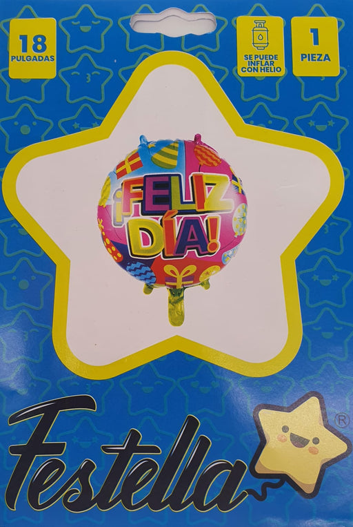 Precio original $4.200,00Precio actual $2.500,00| /Globo Metalizado Feliz Dia Fiesta Colorida 18" Festella