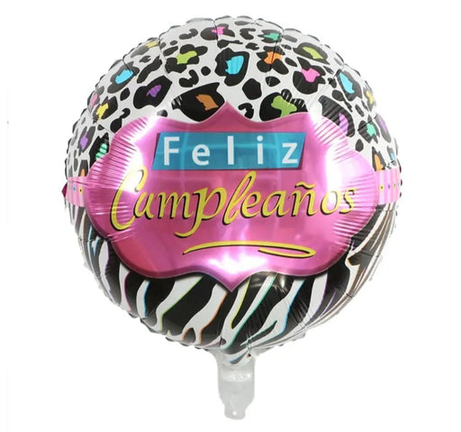 Precio original $2.800,00Precio actual $1.800,00| /Globo Metalizado Redondo Feliz Cumpleaños Animal Print 18"