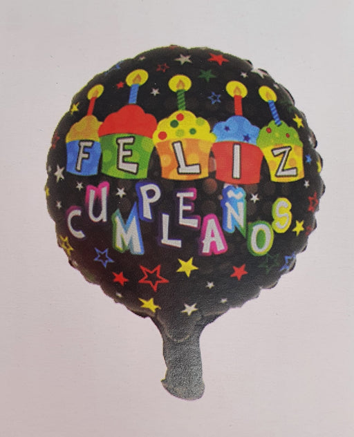 Precio original $2.700,00Precio actual $1.500,00| /Globo Metalizado Redondo Feliz Cumpleaños Cupcakes y Estrellas 6" Festella
