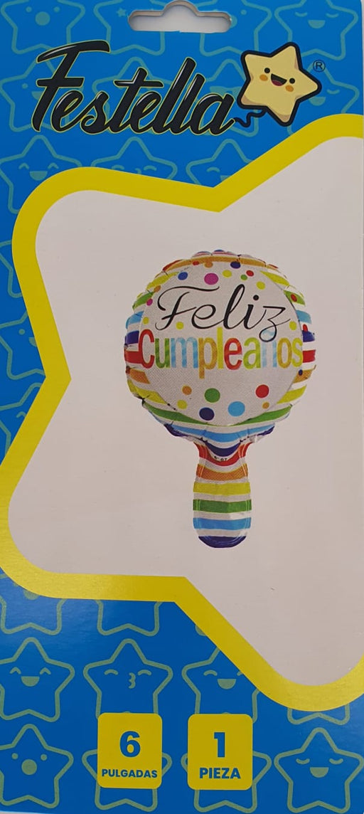 Precio original $2.700,00Precio actual $1.500,00| /Globo Metalizado Redondo Feliz Cumpleaños Rayas Multicolor 6" Festella