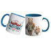 Taza en Ceramica Blanca (Interior y Manija en color Azul) Sublimada con diseño a eleccion. Apto para contacto con alimentos, Dimensiones: 8 cm de Diametro x 9.5 cm de alto/ Capacidad 11 Onzas