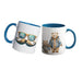 Taza en Ceramica Blanca (Interior y Manija en color Azul) Sublimada con diseño a eleccion. Apto para contacto con alimentos, Dimensiones: 8 cm de Diametro x 9.5 cm de alto/ Capacidad 11 Onzas