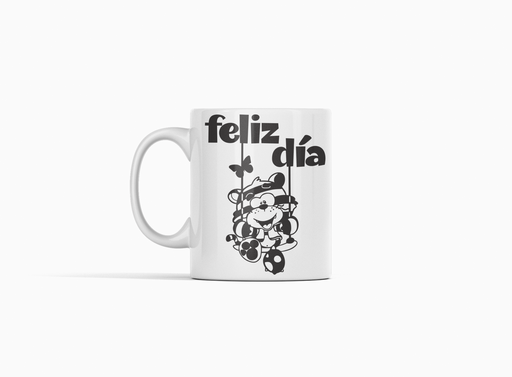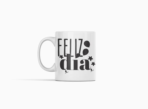 Mug Feliz Día 11 Oz Ref. 23 x 1 Unidad  Taza en Ceramica Blanca (Interior y exterior) Sublimada con diseño a eleccion. Apto para contacto con alime...