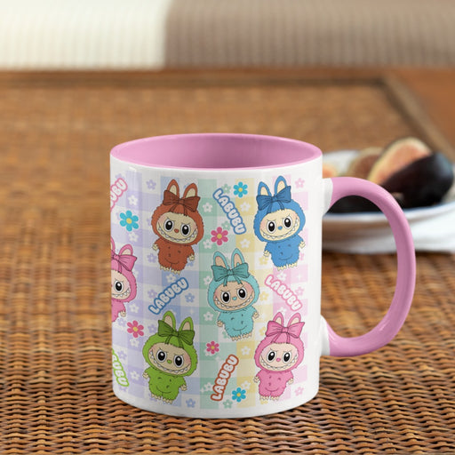 Mug CompanyMug Premium Labubu 11 Oz Ref. 1 x 1 Unidad Taza en Cerámica Blanca en exterior y Rosado en interior y oreja. Sublimada con diseño a elección. Apto...