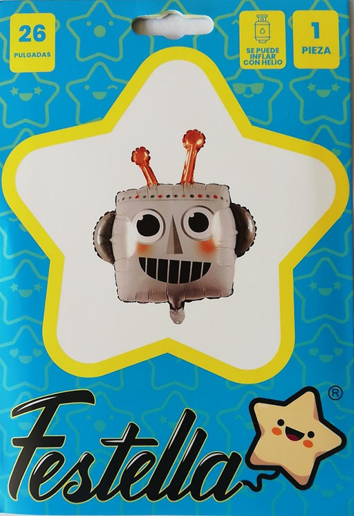 Precio original $5.400,00Precio actual $5.200,00| /Globo Metalizado Cara de Robot 26"