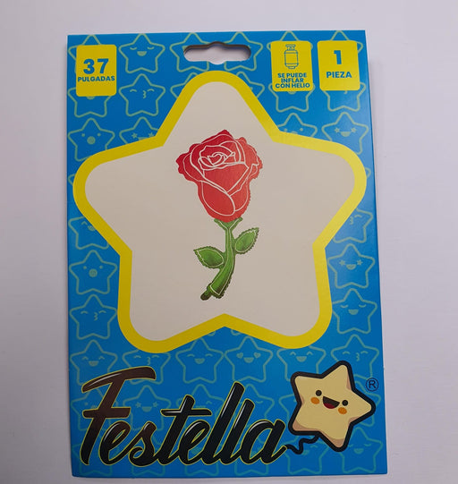 Globo Metalizado Rosa Roja Tallo Dorado 37" Festella