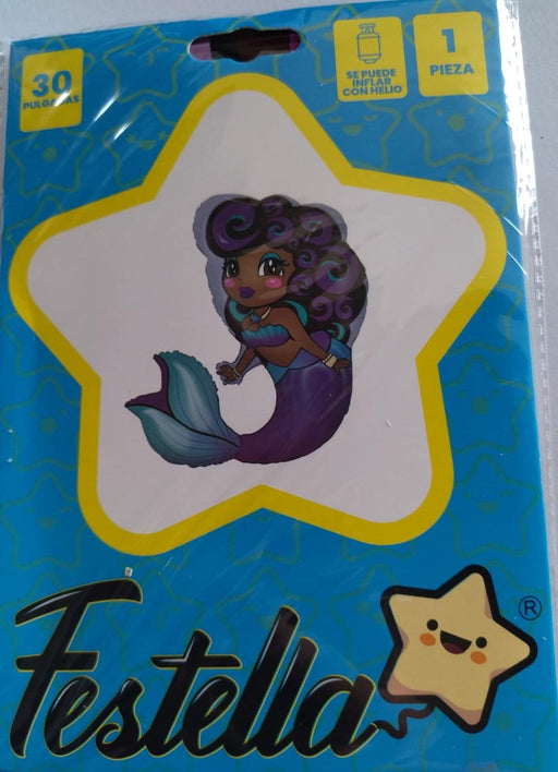 Globo Metalizado Sirena Morada Cola Verde 14" Festella