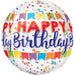 Globo Metalizado Tipo Orbiz Happy Birthday Festones Plateado 16" X 1 Unidad